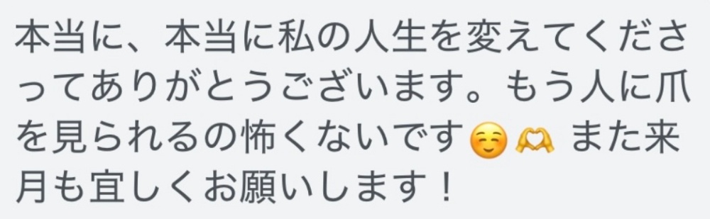 自爪育成で、コンプレックスだった爪が今では自慢できるようになったお客様がアミィネイルには沢山いらっしゃいます😍✨嬉しいお声を頂いておりますのでご紹介させてください💕