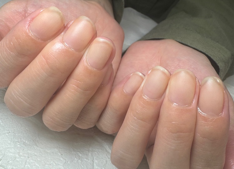 ネイルは色やデザインを楽しむものだと思っていませんか?実は、当店のお客様には【看護師さん】や【調理師さん】などネイルNGな職業の方も多数いらっしゃいます😊当店の【自爪風仕上げ】ならこんなに自然に仕上がるので周りに気づかれず爪が綺麗になるのです♡